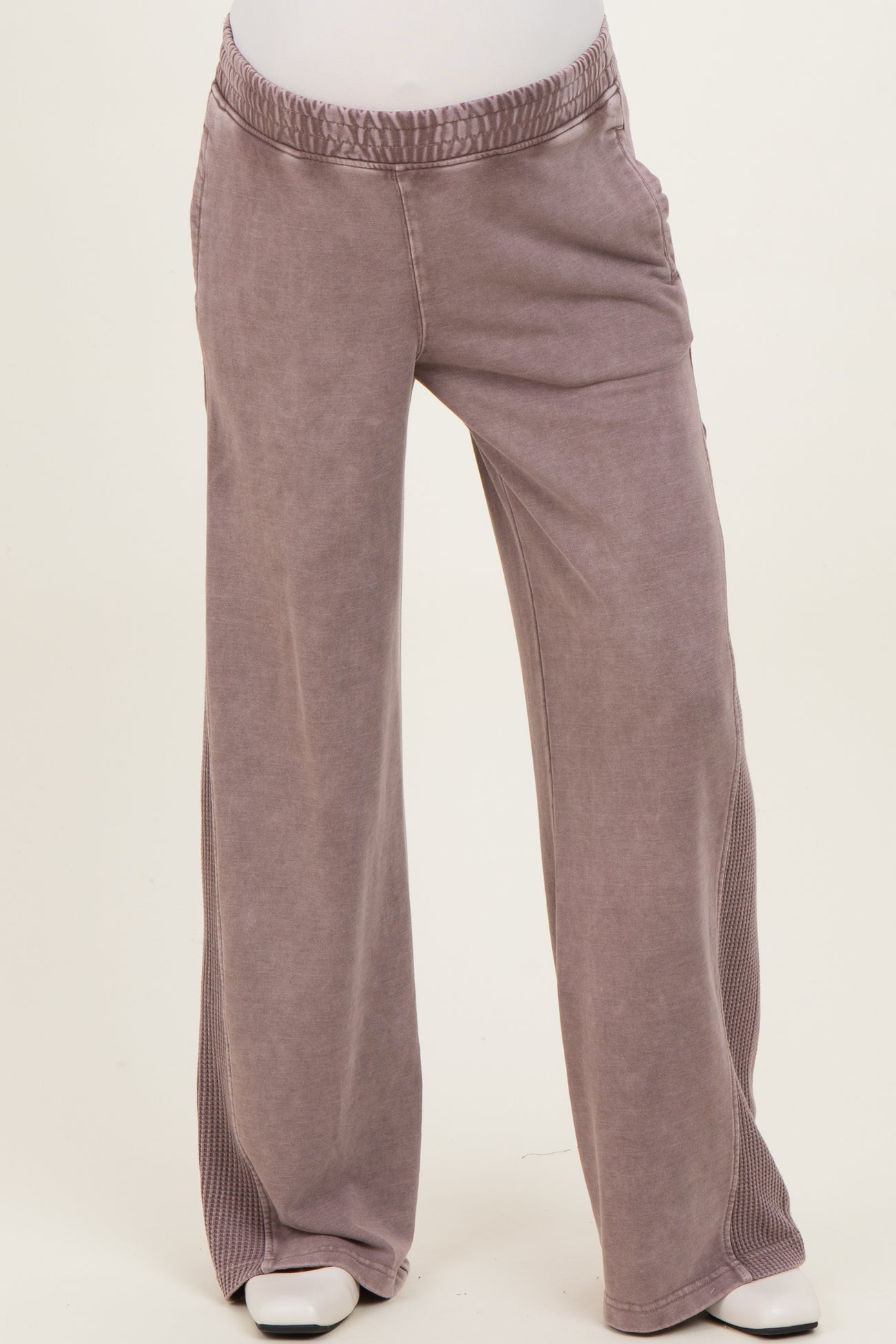 Mocha Mineral Wash Waffle Knit Contrast Maternity Lounge Pants