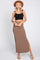 Mocha Ribbed Side Slit Midi Skirt