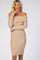 Mocha Soft Ribbed Folded Neck Off Shoulder Dress