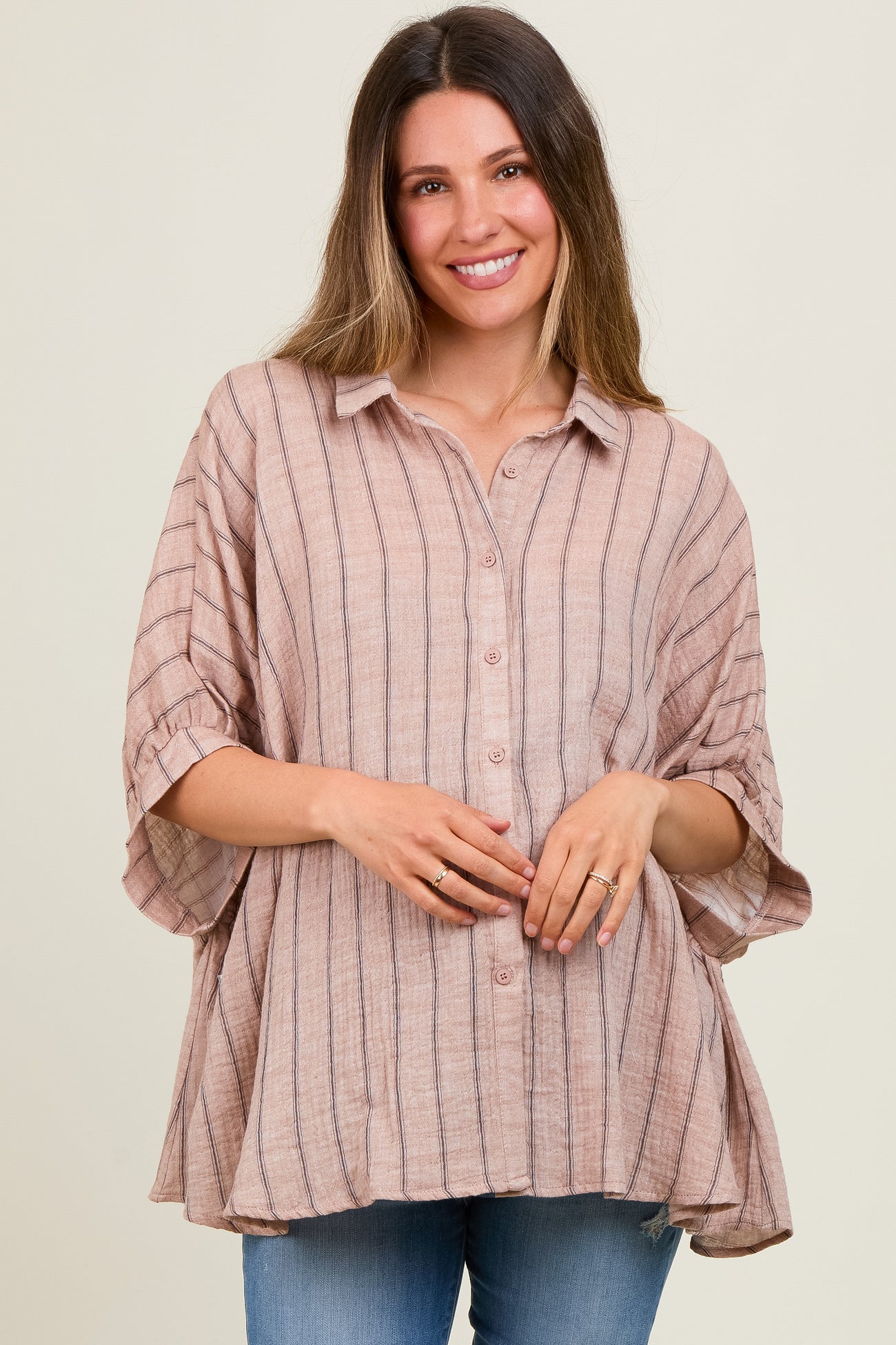 Stay effortlessly stylish and comfortable with our Mocha Striped Collared Oversized Maternity Top. Designed to accommodate your growing bump, this top features a relaxed, oversized fit with soft vertical stripes in a warm mocha tone. The classic collar and button-down front add a timeless touch, while the breathable, lightweight fabric ensures all-day comfort. Perfect for casual outings or layering, this versatile maternity top pairs beautifully with your favorite jeans or leggings. Embrace cozy, chic maternity wear with this must-have striped button-up that grows with you through every trimester. Available in multiple sizes.