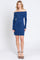Navy Blue Foldover Off Shoulder Long Sleeve Dress