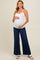 Navy Blue Unfinished Hem Wide Leg Maternity Jeans