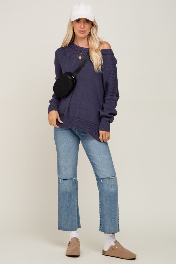A sweater featuring a crew neckline, ribbed trim, exposed seam detailing, long sleeves and side slits.