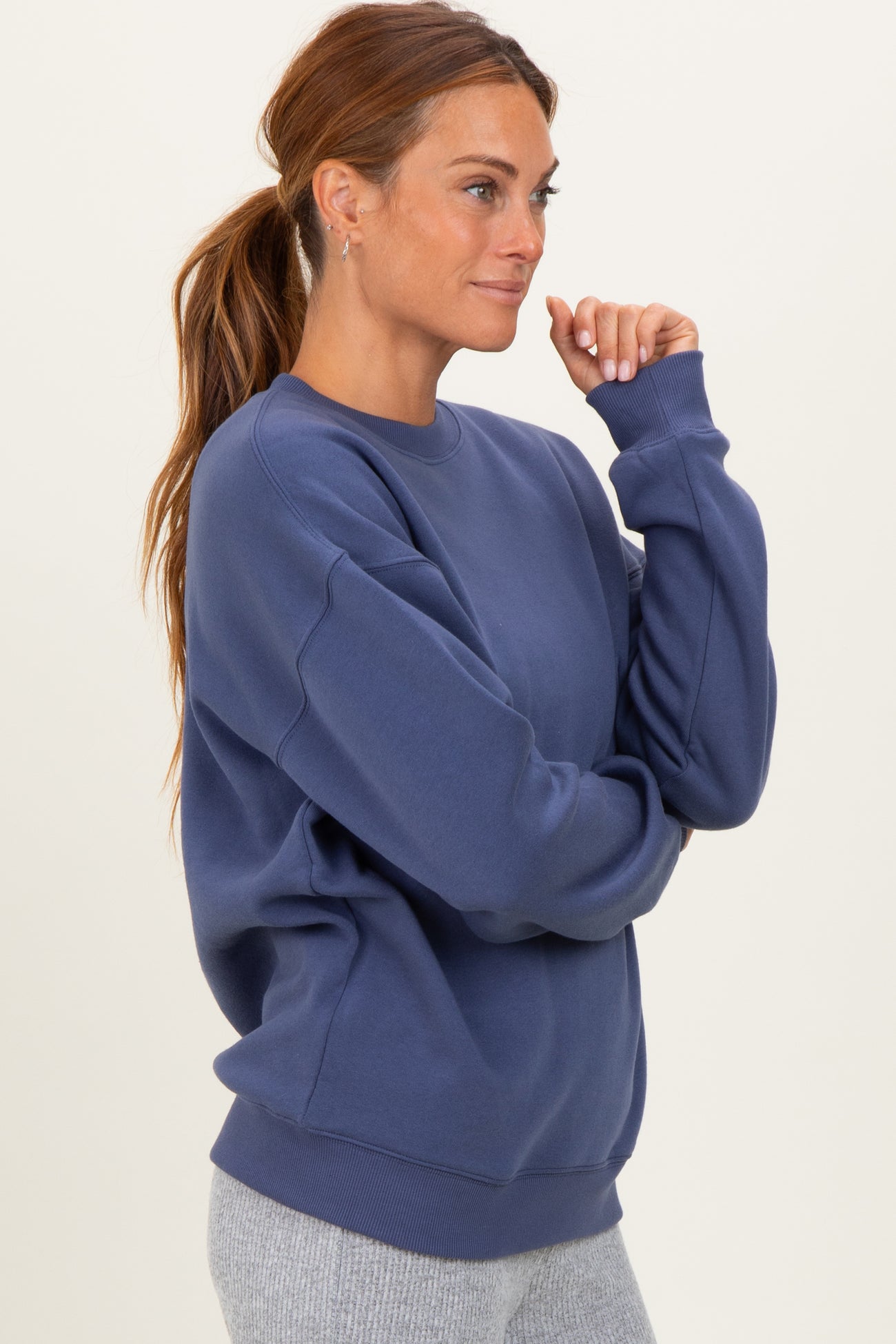 Navy Fleece Crew Neck Relaxed Fit Sweatshirt