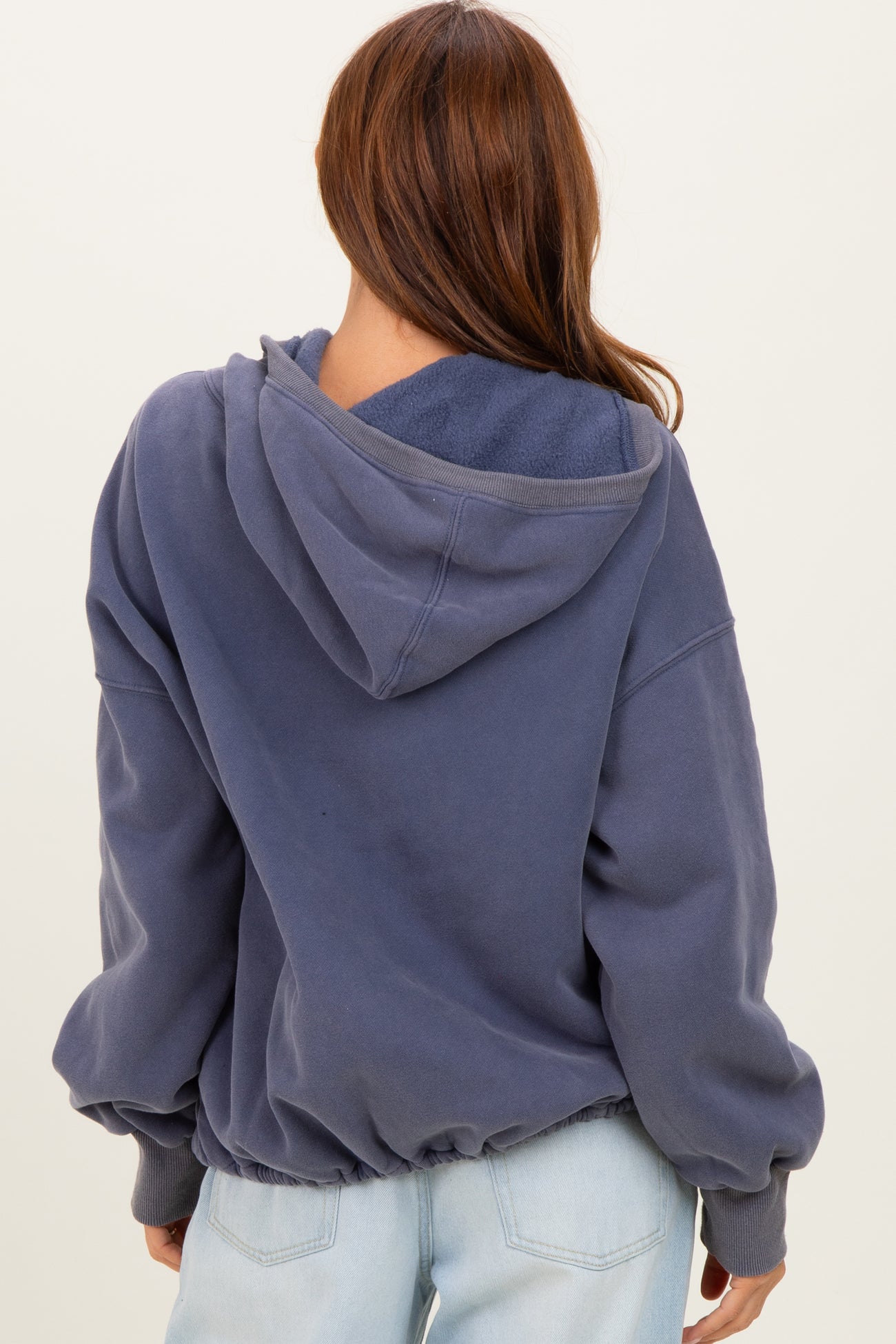 Navy Fleece Half Zip Drop Shoulder Hoodie