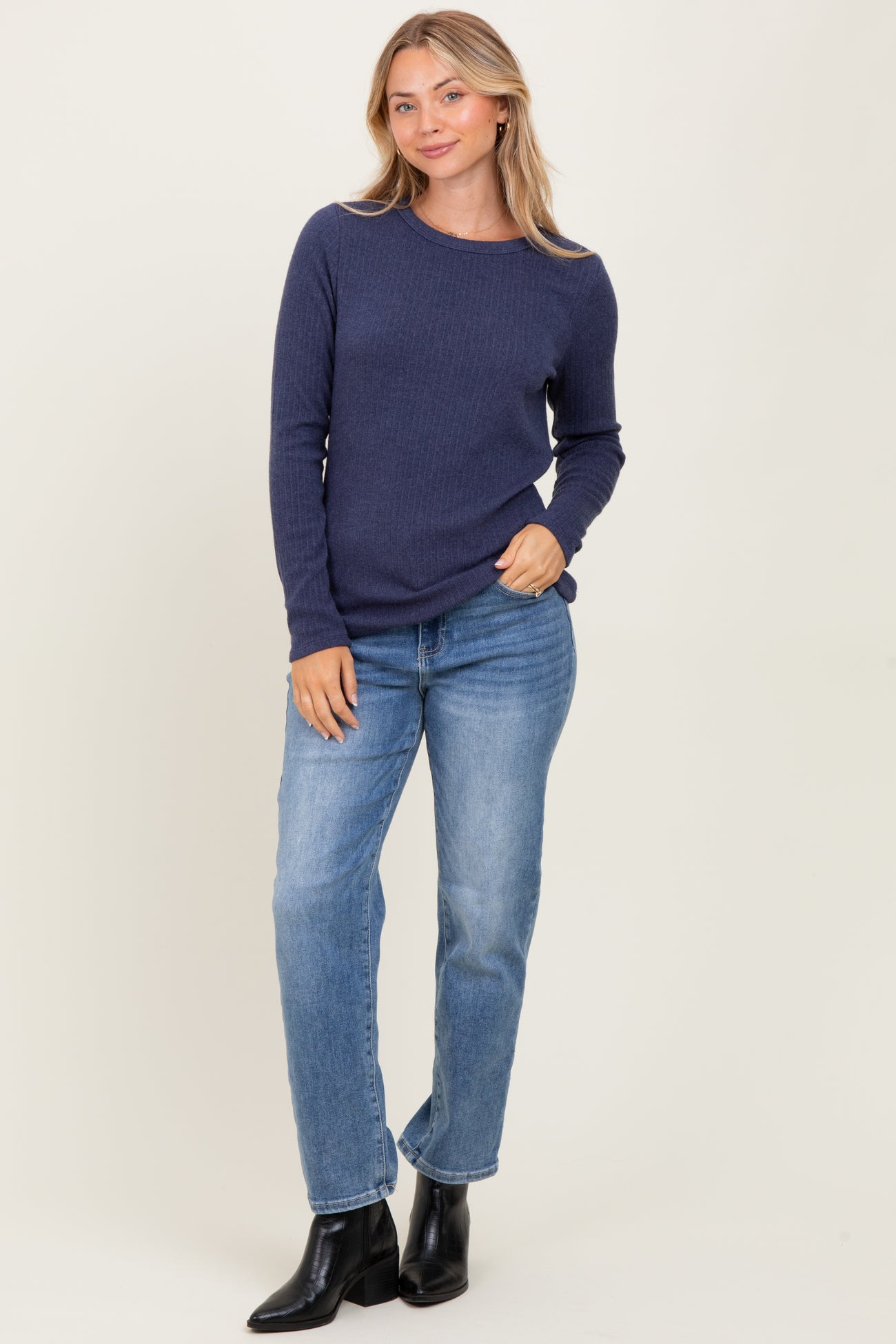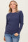 Navy Ribbed Knit Long Sleeve Top