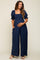 Navy Smocked Square Neck Wide Leg Maternity Jumpsuit