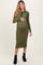 Olive Contrast Trim Ribbed Knit Button Up Maternity Midi Dress