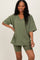 Olive Oversized V-Neck Biker Short Set