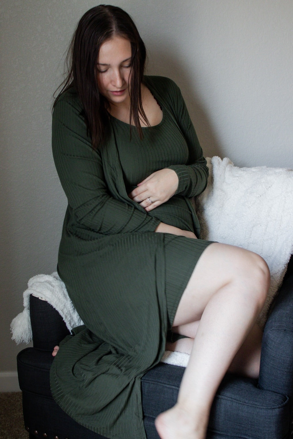 Olive Ribbed Cardigan 2 Piece Maternity Set