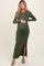 Olive Ribbed Knit Long Sleeve Side Slit Maternity Maxi Dress