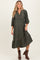 Olive V-Neck Contrast Trim 3/4 Sleeve Maternity Midi Dress