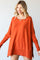An ultra-soft knit lightweight sweater featuring a wide rounded neckline, long dolman sleeves, side slits and ribbed hi-low hem.