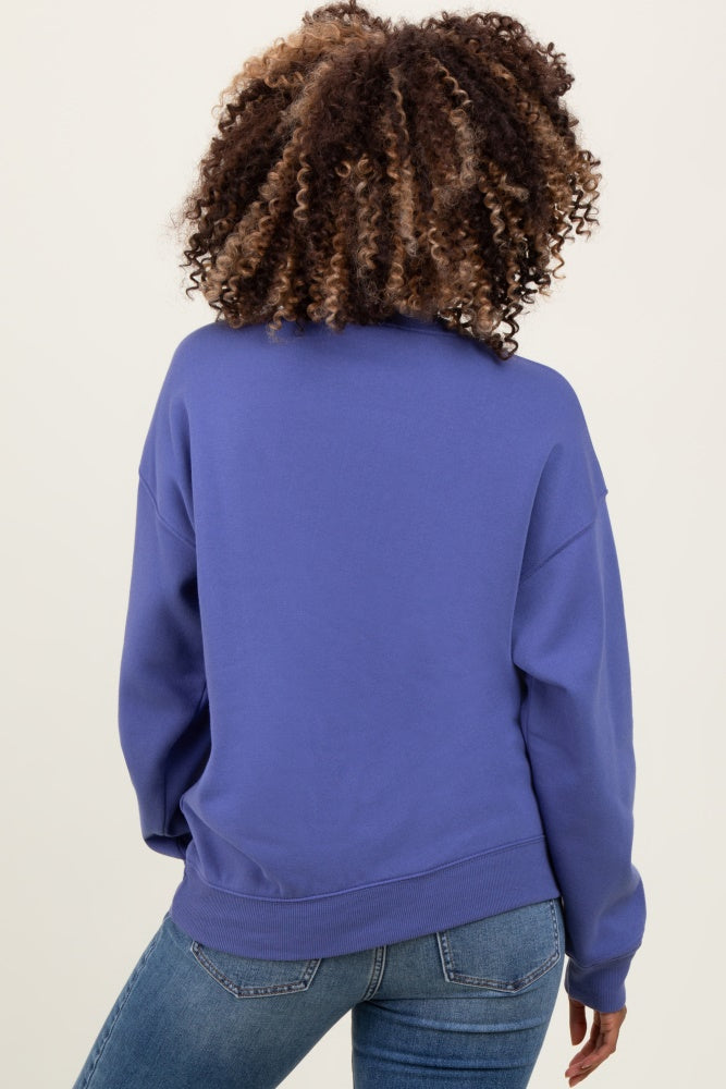 Periwinkle Basic Fleece Crewneck Maternity Sweatshirt