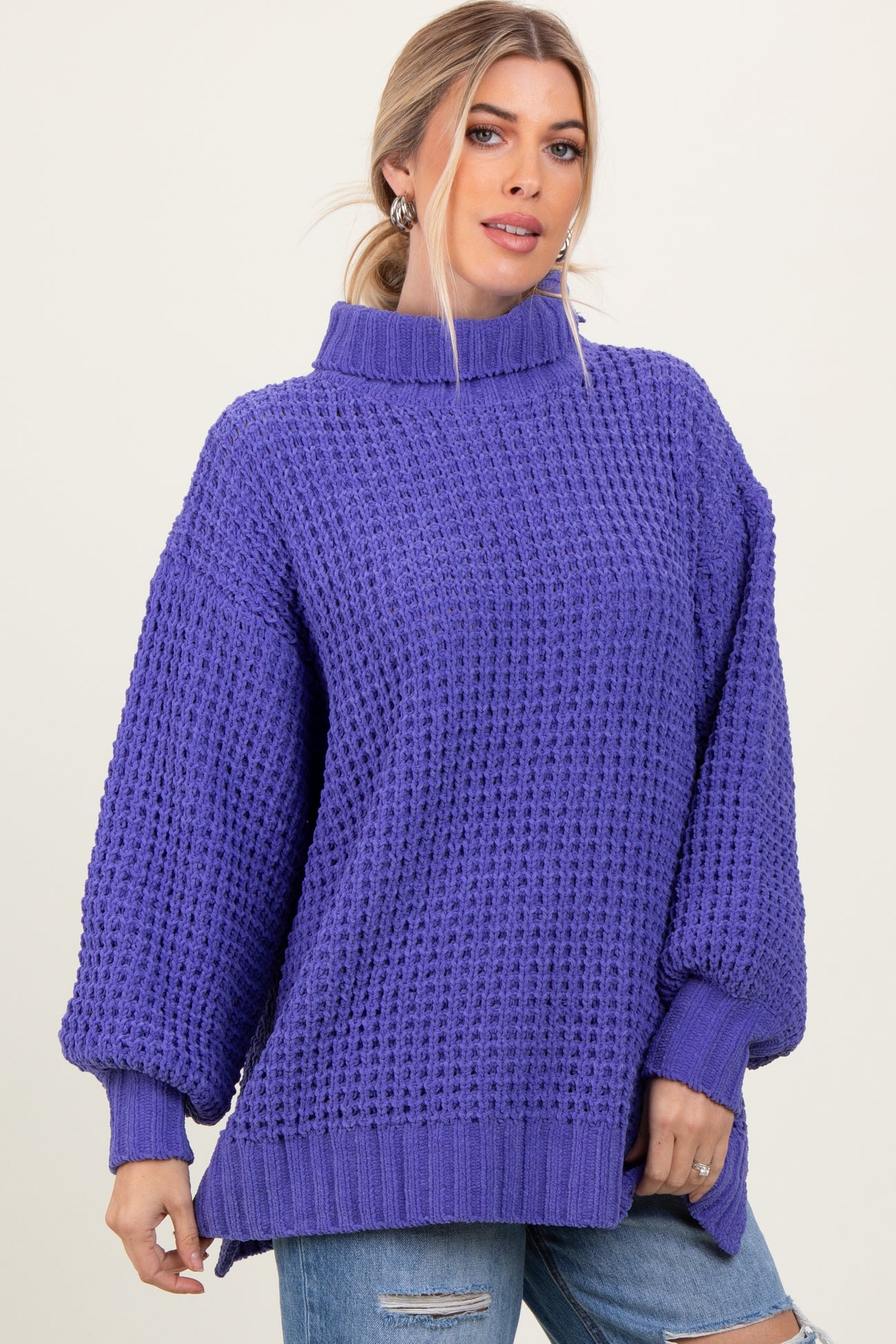 Periwinkle Chunky Waffle Knit Turtleneck Sweater