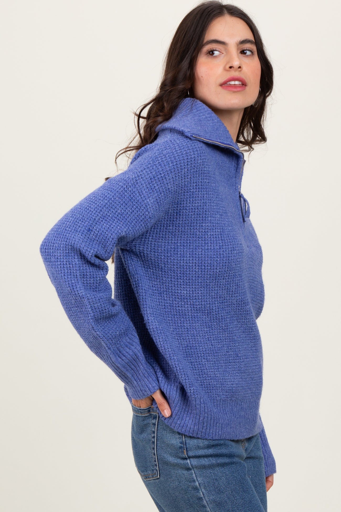 Cozy up in the Periwinkle Half Zip Pullover Sweater, your new go-to for effortless style and comfort. Featuring a soft, textured knit in a beautiful periwinkle hue, this sweater offers warmth without bulk. The half zip design lets you customize your look—wear it zipped up for a high collar or open for a relaxed vibe. Ribbed cuffs and hem provide a snug fit, while the relaxed silhouette ensures all-day comfort. Perfect for layering or wearing solo, this versatile pullover pairs effortlessly with jeans or leggings for a chic, casual look. Elevate your wardrobe with this must-have sweater!