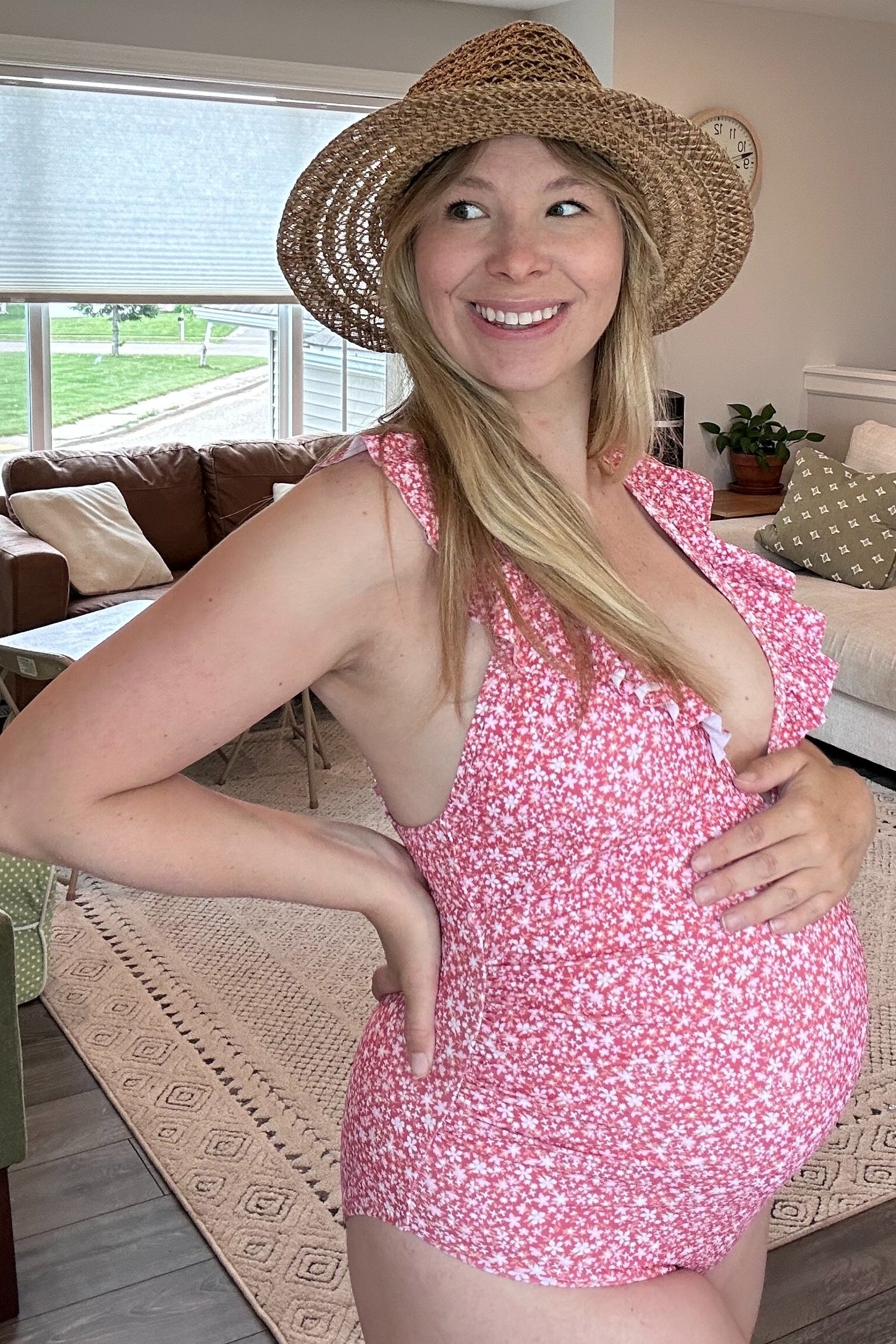 Pink Floral Ruffle Maternity One-Piece Swimsuit