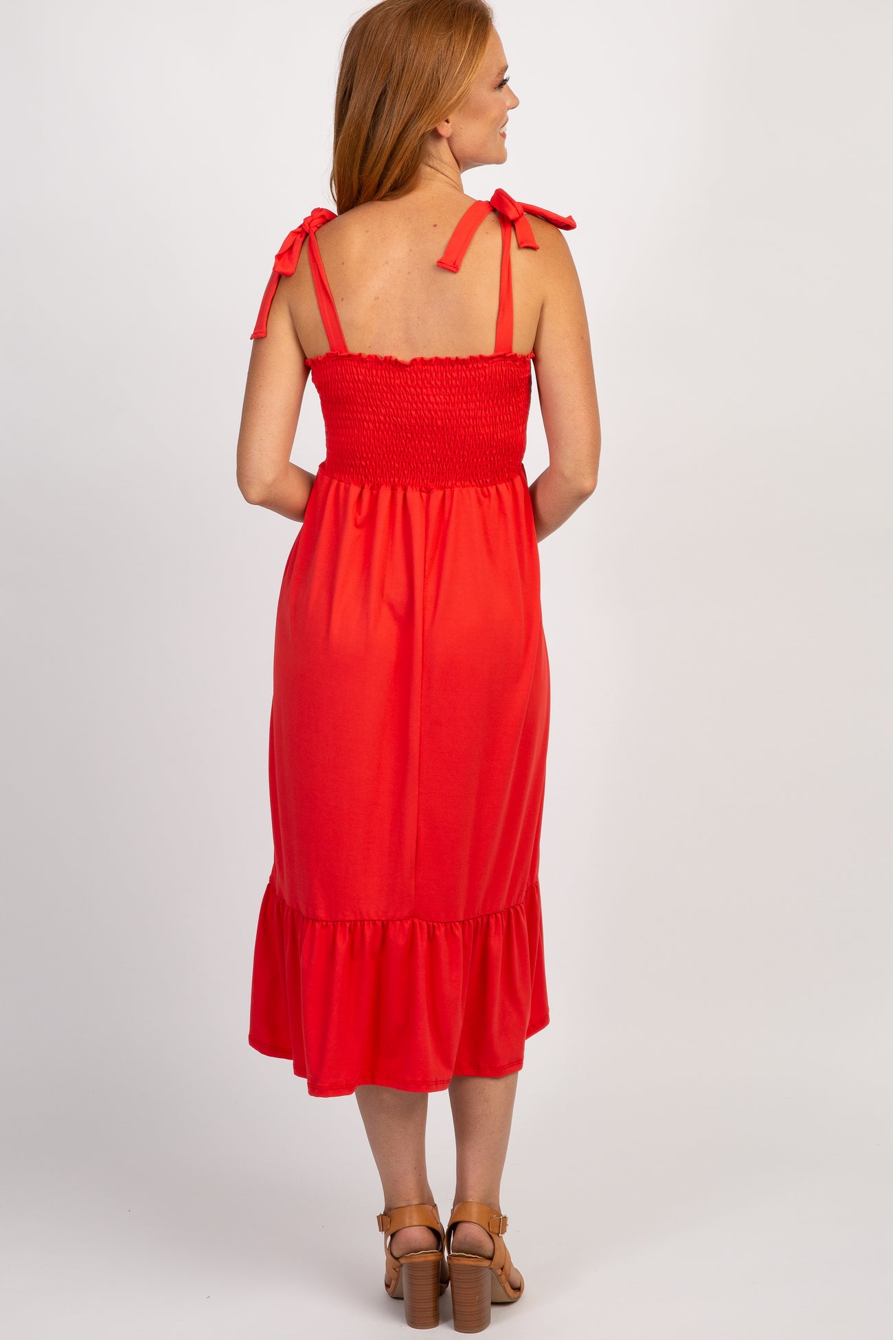 PinkBlush Red Solid Self-Tie Smocked Midi Dress