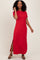 Red Basic Side Slit Short Sleeve Midi Dress