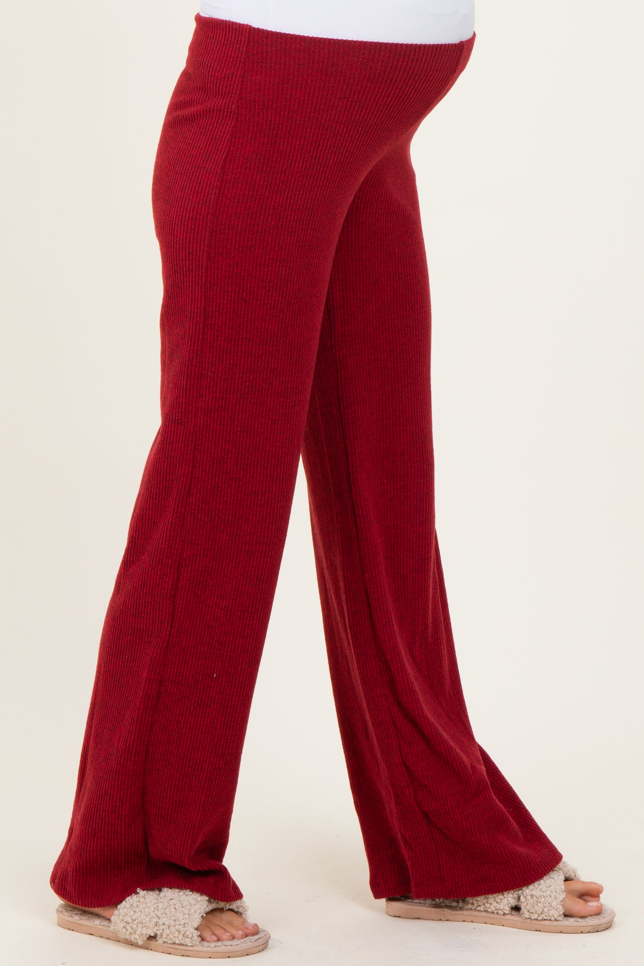 Red Brushed Knit Flare Leg Maternity Pants