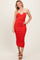 Red Contrast Trim Keyhole Cutout Midi Dress