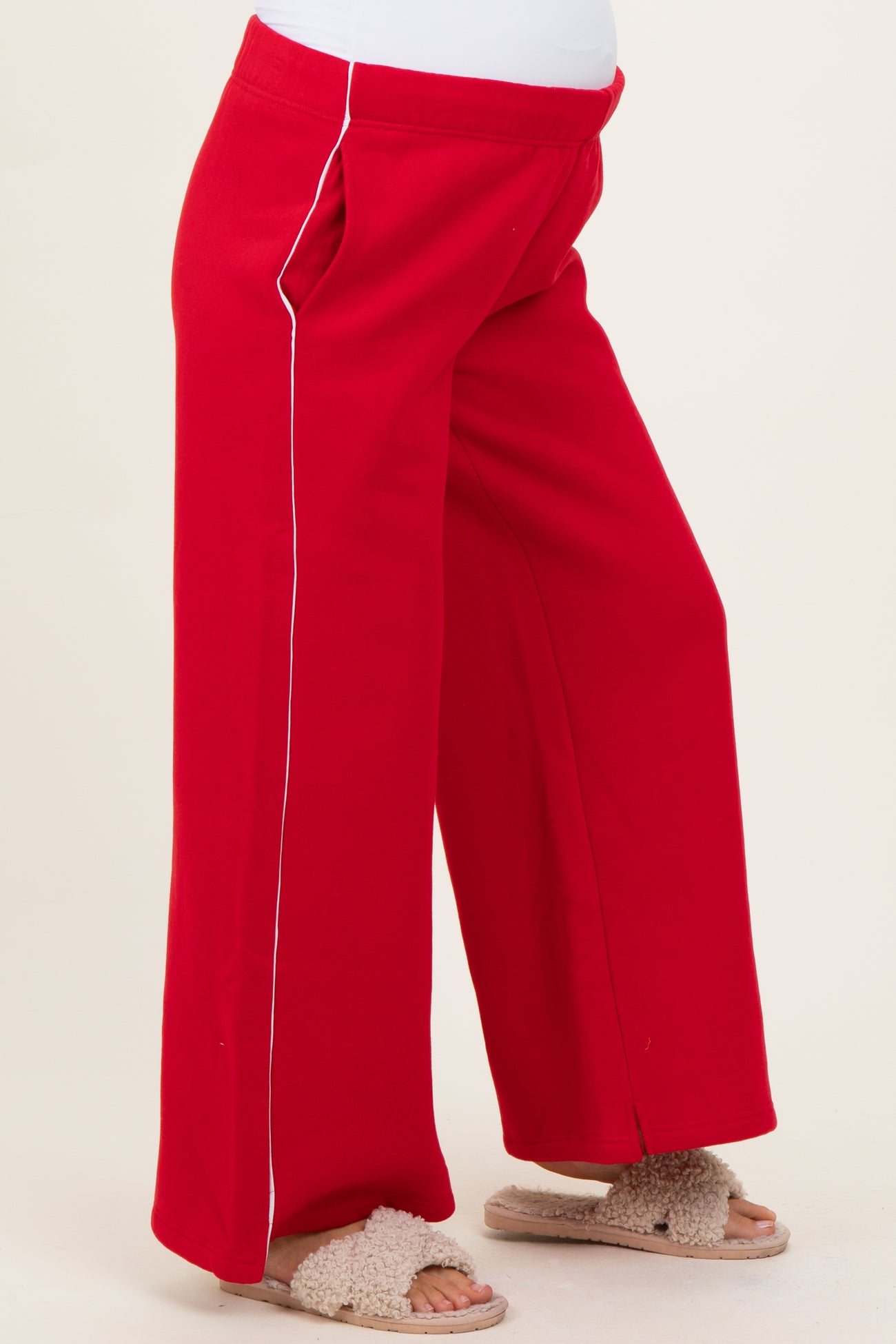 Experience ultimate comfort and style with our Red Fleece Wide Leg Maternity Sweatpants. Crafted with soft, cozy fleece, these pants are designed to keep you warm and comfortable throughout your pregnancy. The wide leg cut offers a relaxed fit that flatters every stage of your bump, while the elastic waistband ensures gentle support without restriction. Featuring convenient side pockets and subtle side slits for added ease of movement, these sweatpants are perfect for lounging at home or casual outings. Elevate your maternity wardrobe with this versatile, breathable essential that combines functionality and fashion effortlessly.