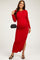 Red Ribbed Long Sleeve Side Slit Maternity Maxi Dress