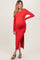 Red Ruched Tie Side Slit Maternity Midi Dress