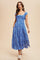 Royal Blue Floral Smocked Ruffle Detail Midi Dress