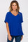 A solid hued blouse featuring short sleeves and a v-neckline.