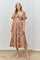 Rust Floral Puff Sleeve Smocked Waist Midi Dress