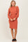 A rib knit midi dress featuring a mock neck, long puff sleeves, and a top layer that allows for nursing access.
