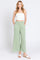 Details A pair of crop length, linen pants featuring an elastic waistband, side pockets, and fringe trim. Content + Care