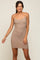 A textured knit dress. Features a scoop neckline and elastic straps.
