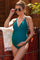Turquoise Ruched Side Strappy Cross Back Maternity One Piece Swimsuit