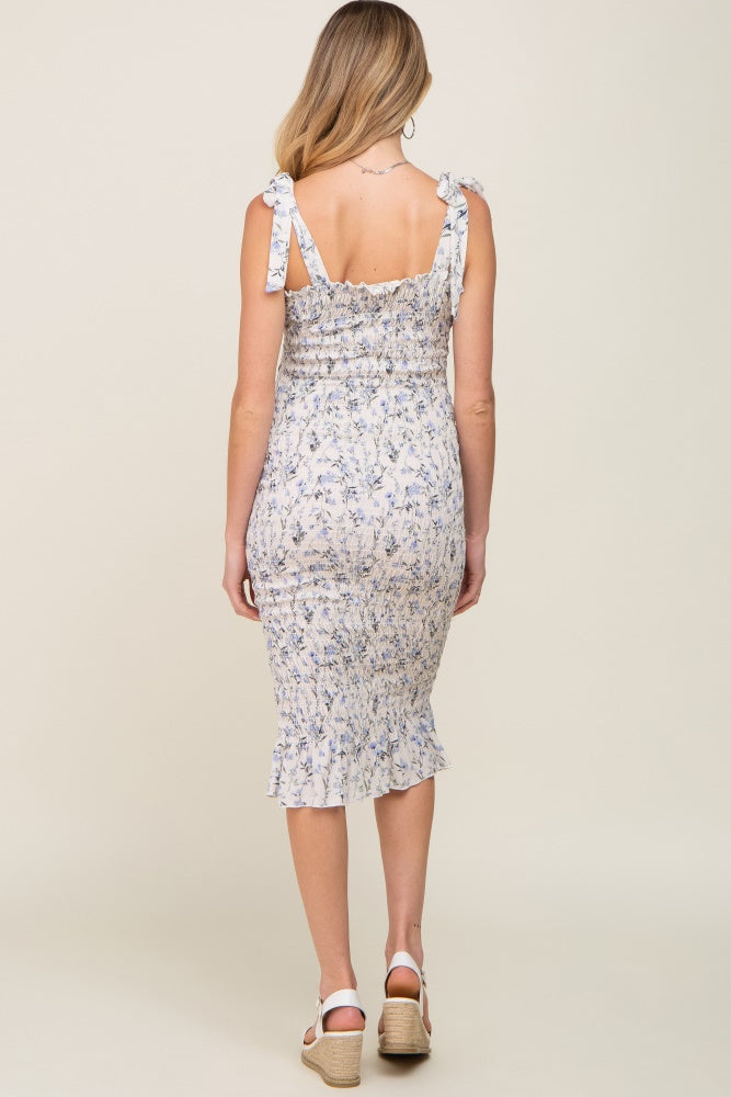 Embrace effortless style and comfort with our White Floral Smocked Fitted Maternity Dress. Featuring a beautiful floral print on soft, lightweight fabric, this dress offers a flattering smocked bodice that gently hugs your bump as you grow. The stretchy, fitted design ensures a chic silhouette at every stage of pregnancy, while the flowy skirt provides plenty of room to move. Perfect for baby showers, brunch, or everyday wear, this dress keeps you feeling pretty and comfortable all day long. Pair it with sandals for a fresh and feminine look that’s sure to turn heads!