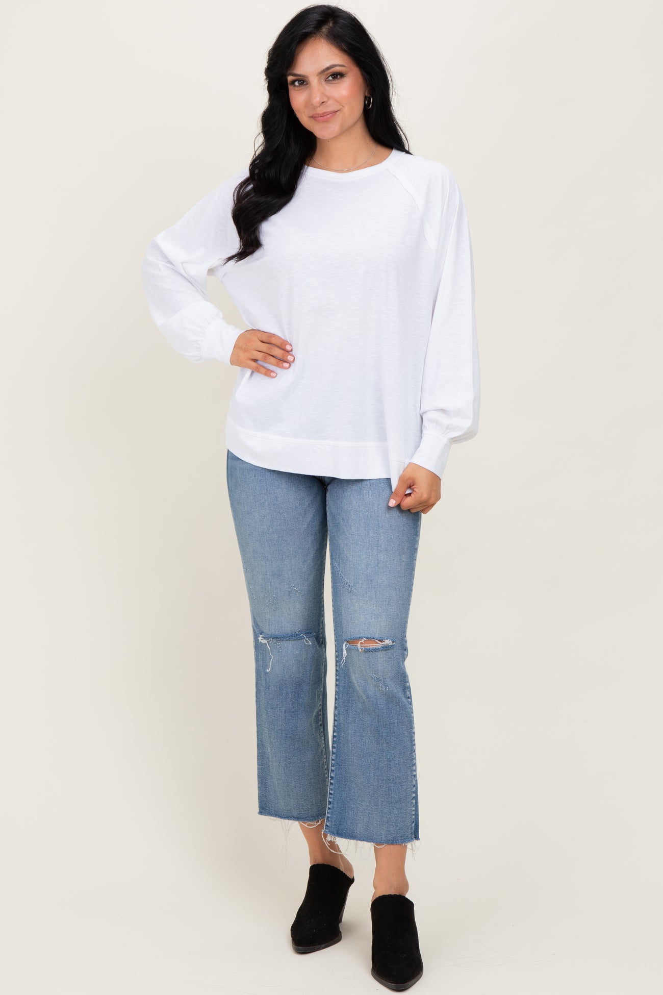 White Oversized Cotton Slub Long Sleeve Top
