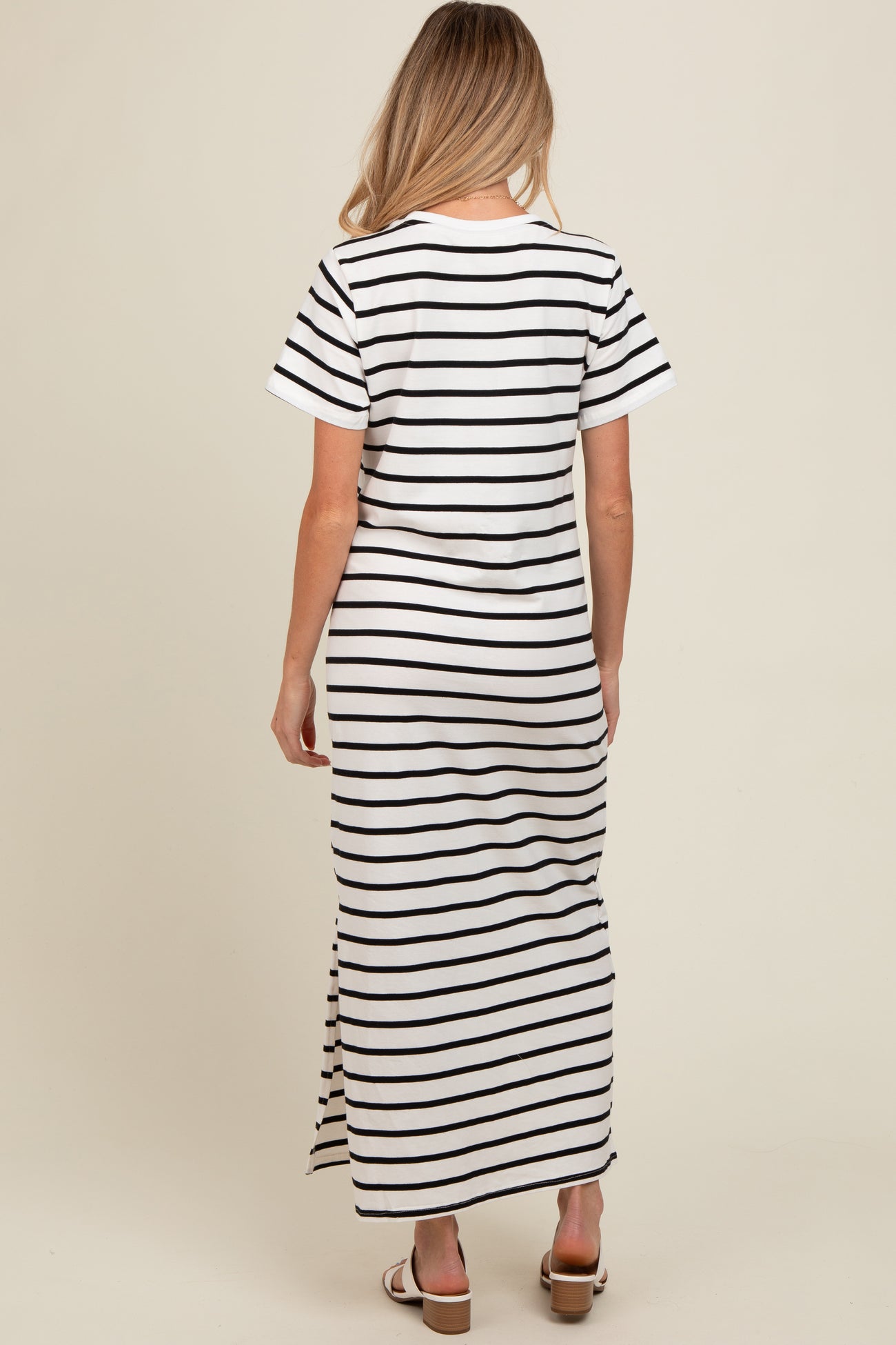 Stay stylish and comfortable through every stage of pregnancy in our White Striped Side Slit Maternity Maxi Dress. Designed with a flattering, bump-friendly silhouette and soft, stretchy fabric, this dress features classic black stripes and chic side slits for easy movement. The relaxed fit gently drapes over your curves, offering both elegance and all-day comfort. Perfect for baby showers, brunches, or any occasion, this versatile maxi dress is a must-have for your maternity wardrobe. Pair it with sandals for a casual look or dress it up with heels and accessories. Embrace effortless maternity style!