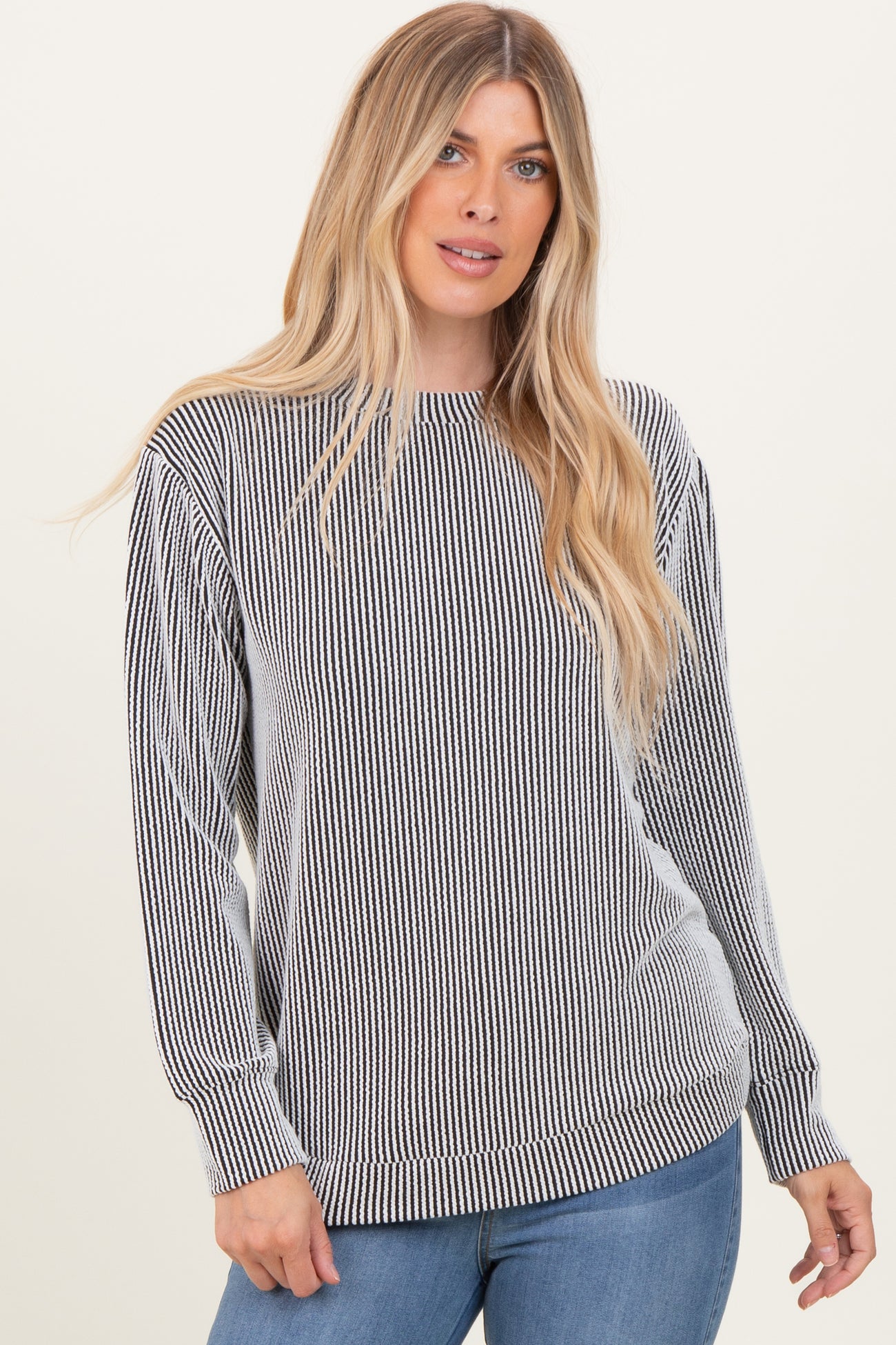 White Textured Rib Crew Neck Long Sleeve