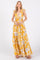 Yellow Floral Deep V-Neck Open Back Maxi Dress