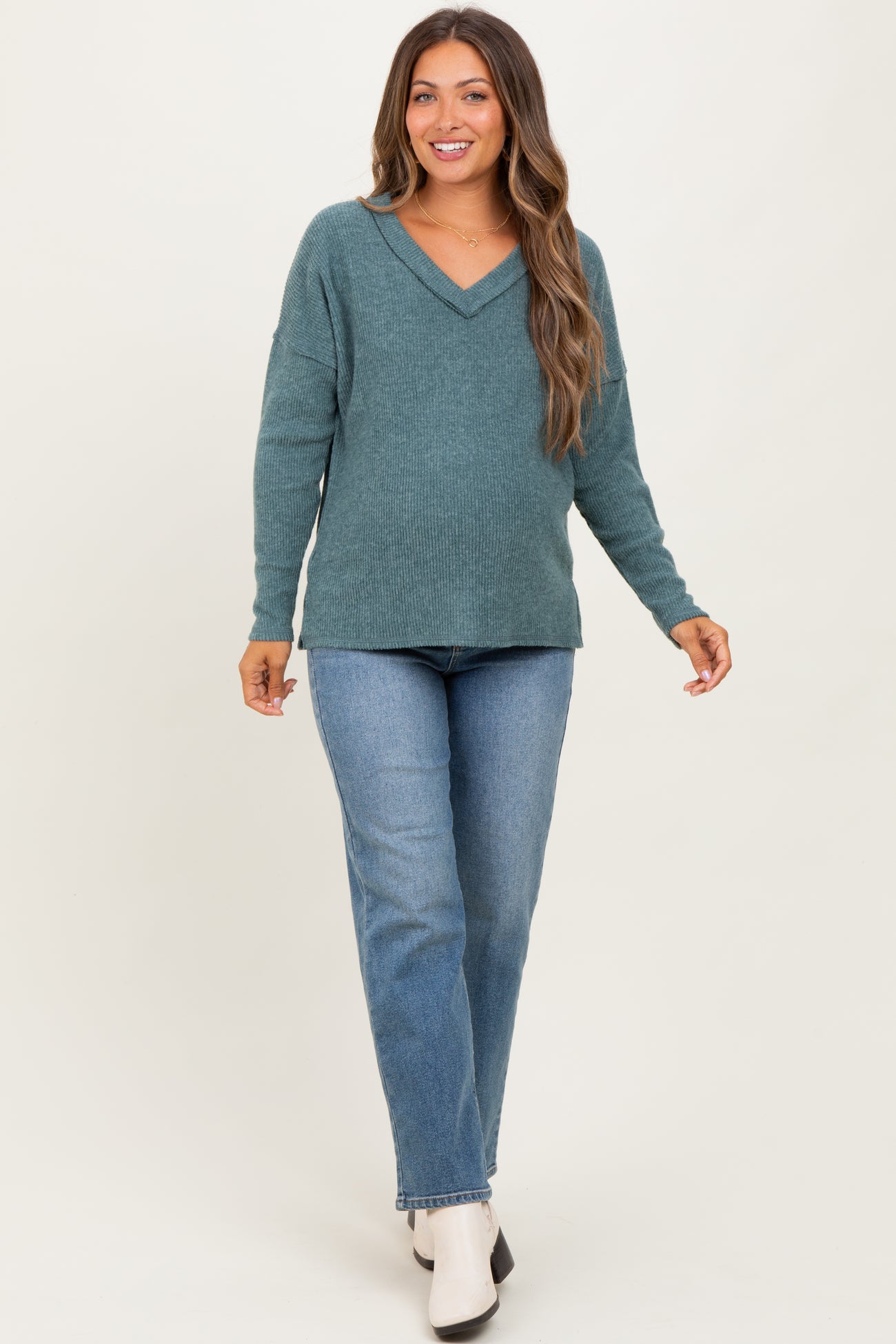 Embrace comfort and style with our Ash Jade Ribbed V-Neck Long Sleeve Maternity Top. Crafted from a soft, stretchy ribbed fabric, this top gently hugs your growing bump while providing all-day comfort. The flattering V-neckline and relaxed fit make it perfect for layering or wearing on its own. Its long sleeves keep you cozy during cooler days, while the ash jade color adds a trendy, modern touch to your maternity wardrobe. Pair it effortlessly with jeans or leggings for a casual, chic look throughout your pregnancy and beyond. Machine washable for easy care. Perfect for expecting moms who want both comfort and style!