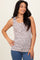 Beige Animal Print Ribbed Henley Sleeveless Top