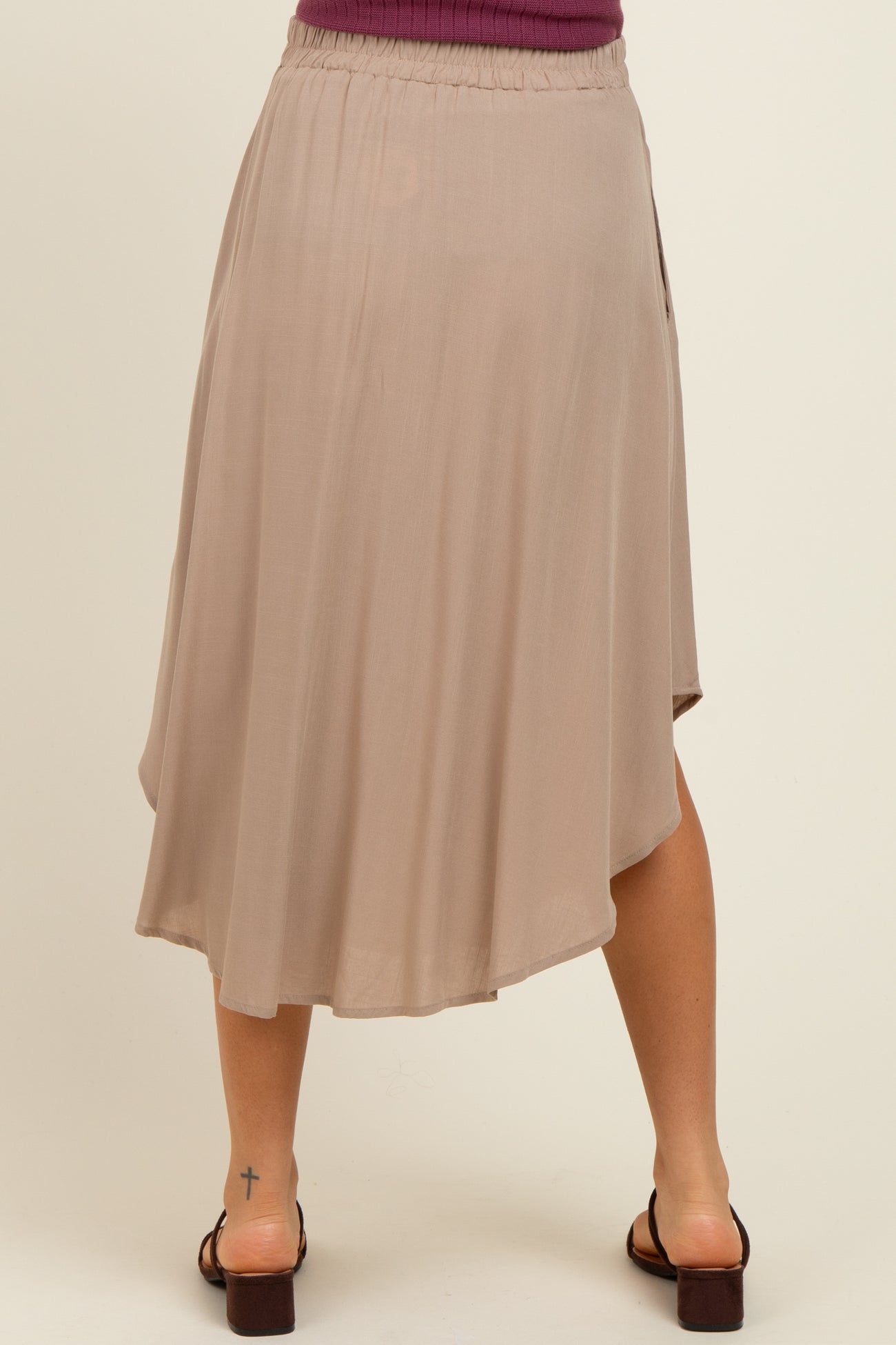 Beige Button Accent Round Hem Maternity Midi Skirt