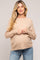 A maternity sweater with a ribbed rounded neckline, a ribbed hem, and long sleeves with button accents.