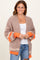 Cozy up in style with our Beige Chunky Knit Stripe Detail Sweater Cardigan. This oversized cardigan features a soft, chunky knit construction in a warm beige tone, accented by bold orange and cream stripes on the voluminous sleeves and hem for a pop of color. Designed with an open front and relaxed fit, it’s perfect for layering over your favorite casual outfits. The ribbed cuffs and hem add extra comfort and shape, while front pockets bring functionality. Pair with jeans and a tee for effortless, laid-back chic. Embrace warmth and standout style this season!