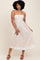 Elevate your wardrobe with this Beige Color Block Back Tie Midi Dress, perfect for effortless elegance. Featuring a sleek square neckline and delicate spaghetti straps, this dress highlights a fitted bodice that flows into a flattering midi-length skirt. The subtle beige tone is beautifully complemented by a crisp white color block hem, adding a modern twist to a classic silhouette. Adjustable back tie details offer a customizable fit, ensuring you feel as great as you look. Made from lightweight, breathable fabric, this dress is your go-to for warm-weather outings, brunch dates, or casual gatherings. Pair with sandals or heels for versatile styling.