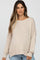 A maternity sweater featuring a crew neckline, ribbed trim, exposed seam detailing, long sleeves and side slits.