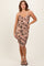 Beige Floral Velvet Overlay Ruched Midi Dress