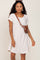 Details A solid dress with a scoop neckline, short frayed sleeves, a gathered bottom tier, and a frayed bottom hem. Content + Care