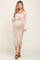 Details A solid ribbed knit maternity fitted midi dress with long sleeves and a wide v-neckline. Content + Care